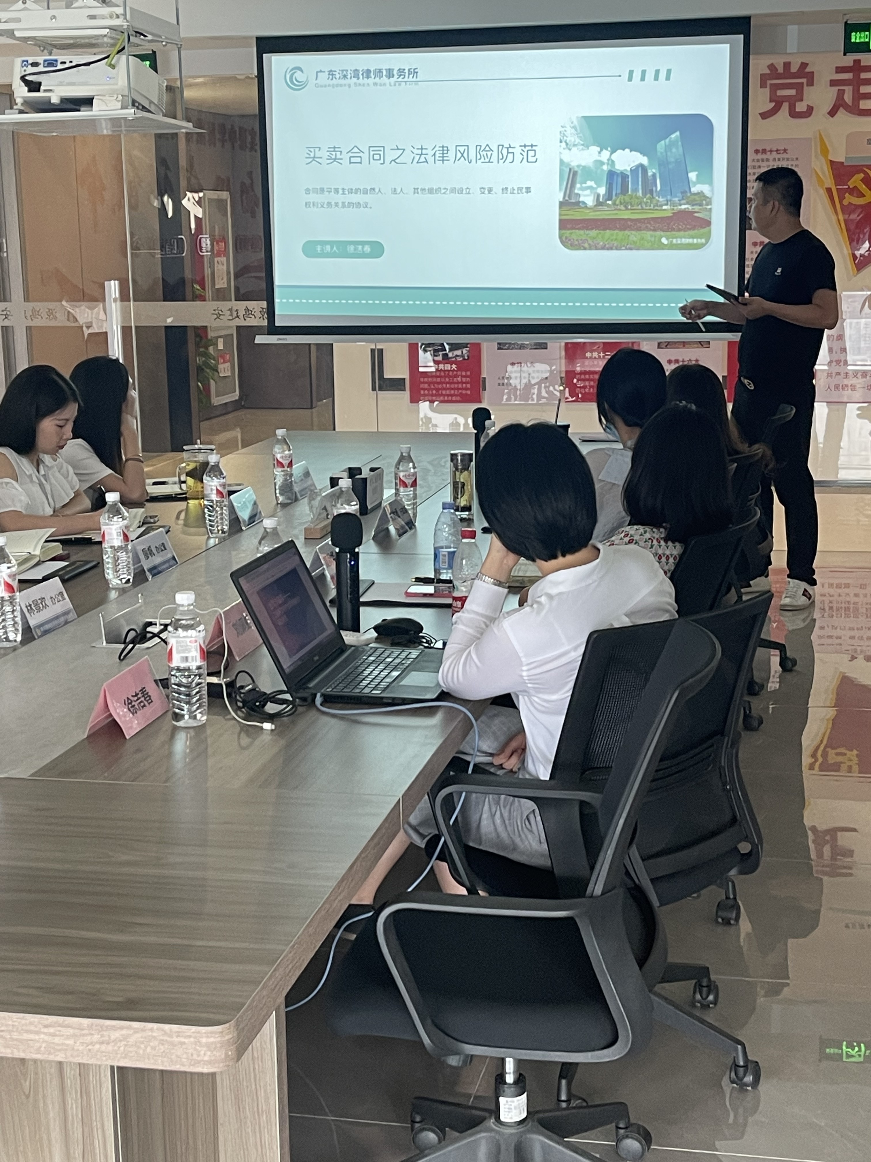 培训过程中,徐洁春律师给大家讲解了买卖合同的法律风险防范,科普了合同在签订前、签订时、履行中、履行后这四个阶段的风险防范流程,让大家树立了收集留存证据意识。